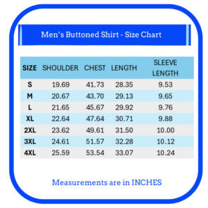 | MENS BUTTON SHIRT SIZES | 2XL, 3XL, 4XL, L, M, S, XL |